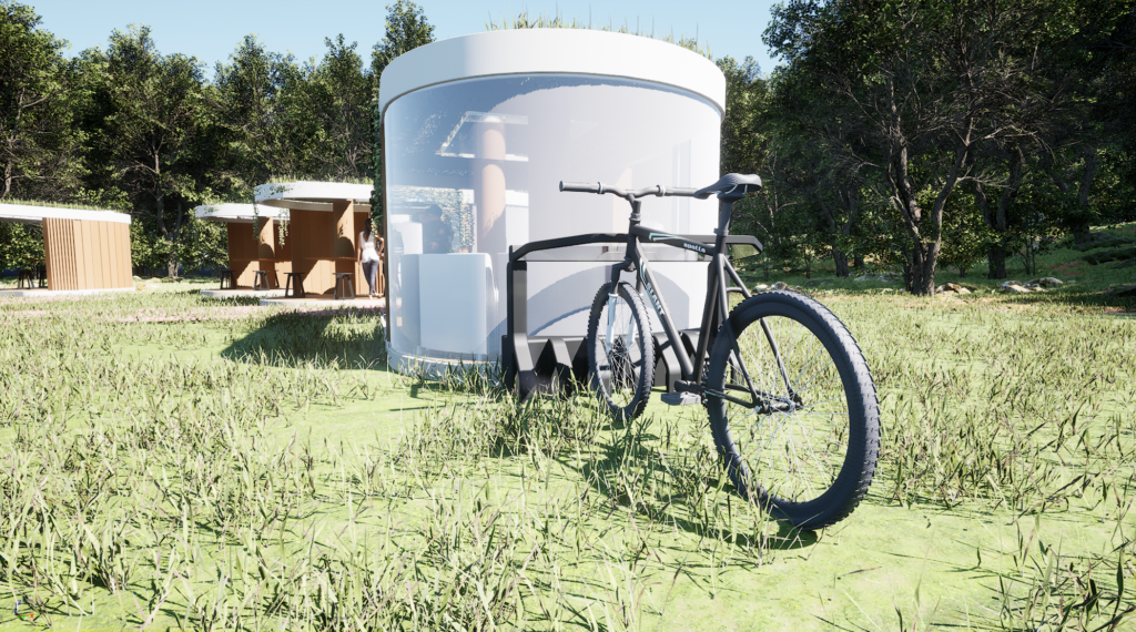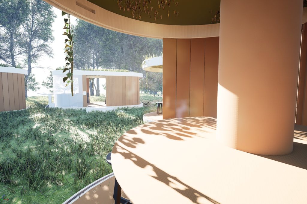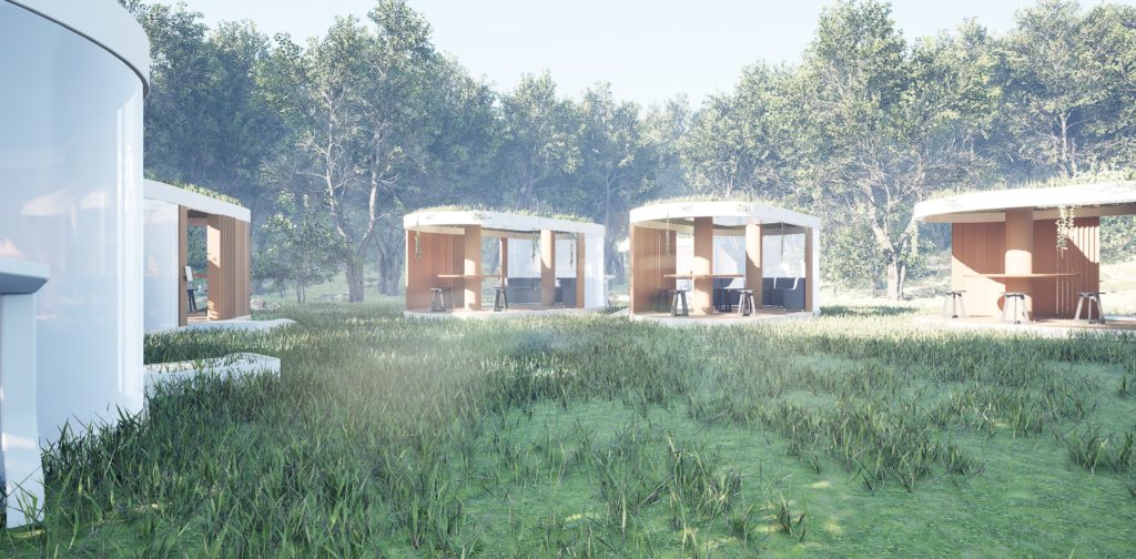 Our concept was to create a nature office pod that can be moved, booked and worked in. Being surrounded by nature is amazing for our mental and physical health. Even when we’re working and focused on work, the effects of nature still has an effect on us. Natural light, fresh air and the sound of leaves rustling is proven to be a boost for our productivity and mental health.