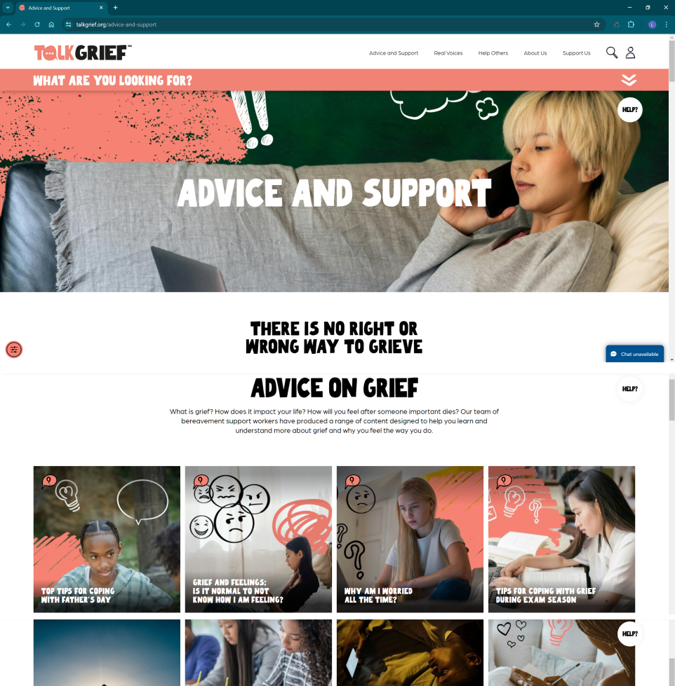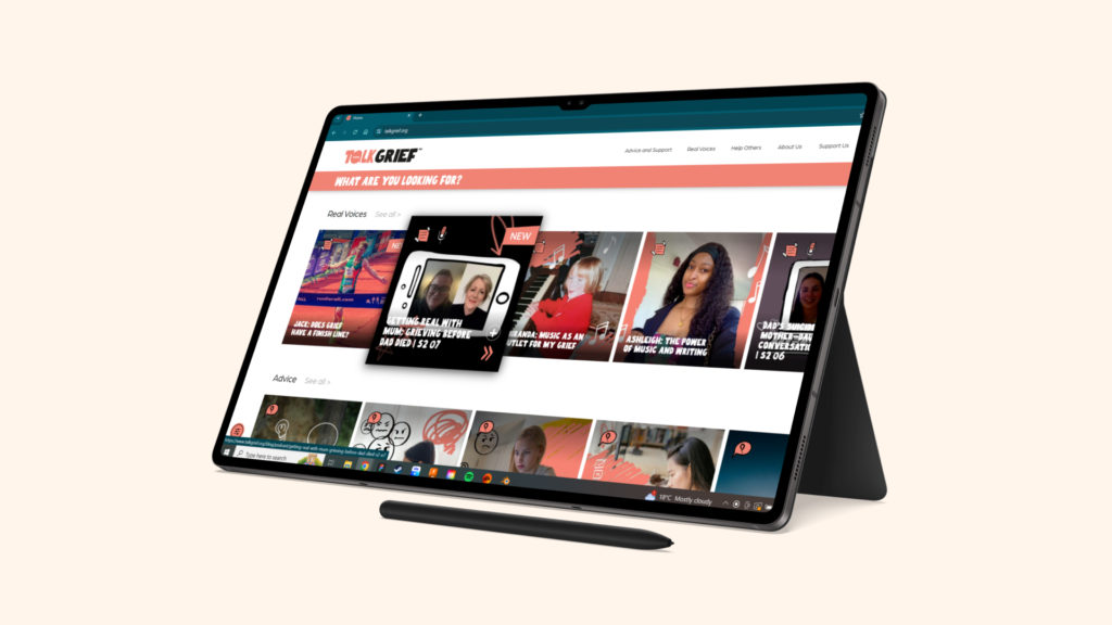 TalkGrief was designed and built to as digital community where users can come to hear other peoples stories, videos and even podcasts that can help them through their journey